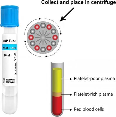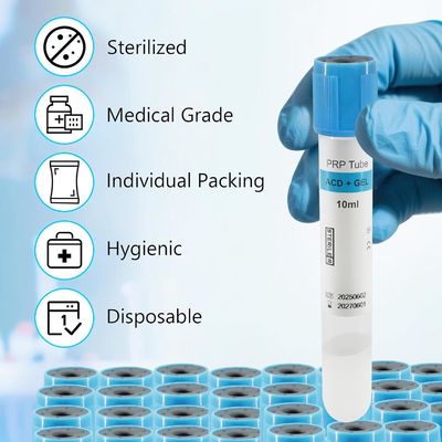 أنابيب جيل PRP 10 مل مع مضاد التخثر ACD,أنابيب الفراغ العقيمة لـ PRP,أنابيب طرد مركزي من البولي بروبيلين لـ PRP